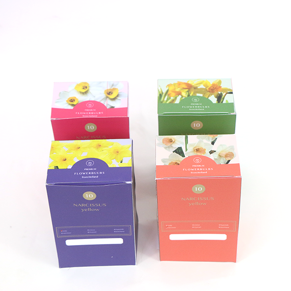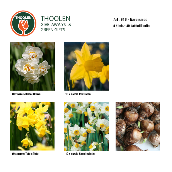 Current packet with strong daffodils. We can add a card to each packet. Inclusive planting instructions in different languages. Each sort has its own plant label for in the garden. We can send this packet worldwide.